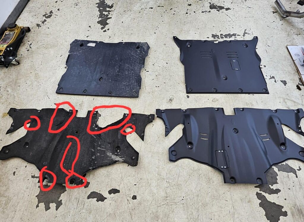 The original plastic and felt skid plates are highly vulnerable to damage, even during normal city driving. We frequently see: