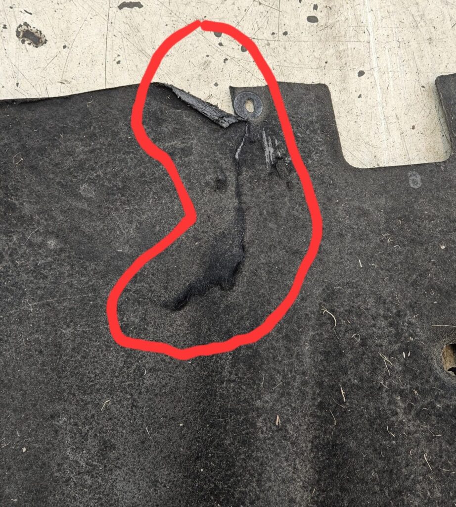 • Rear skid plate: polymer / felt liner (often referred to as under-felt carpet)