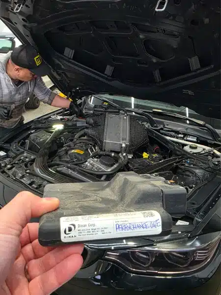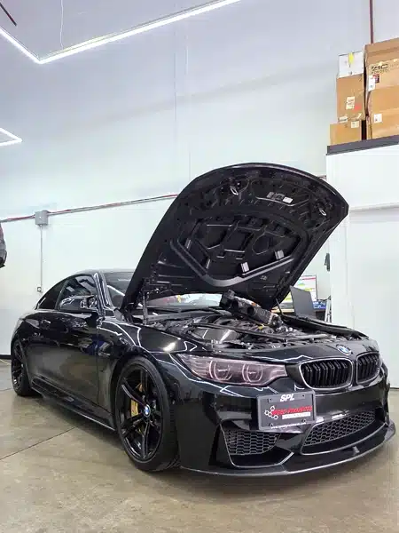 This BMW M4 (F82) came in running a Dinan plug-and-play tuning box, paired with newly installed catless downpipes.